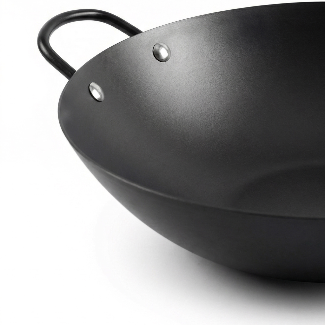 Material: hierro forjado Diametro: 34 cm Espesor: 1,55 Peso: 1,60 kg Mango de haya maciza Con aza